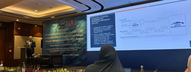 En Yakarta, Indonesia, la Subsecretaría de Pesca y Acuicultura (Subpesca) participó en el taller de APEC titulado "Promoción de Sistemas de Apoyo a la Decisión (DSS) utilizando Datos Digitales para Apoyar la Gestión de Pesquerías de Pelágicos Pequeños en la Región APEC". La instancia se efectuó entre el pasado 23 y 25 de septiembre, en el marco del Foro de Cooperación Económica Asia-Pacífico (APEC), que reúne a 21 economías de la cuenca del Pacífico.
